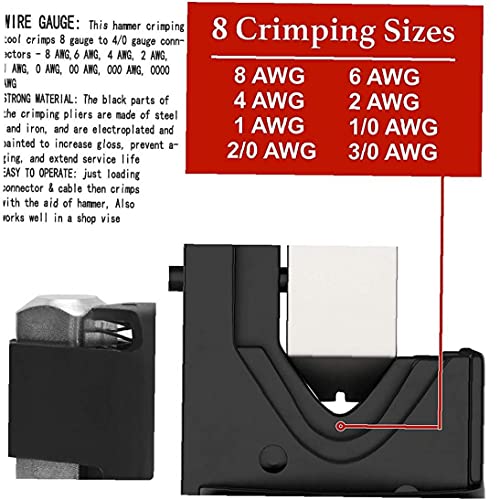 DRAAD GAUGE: dit hamerkrimpgereedschap krimpt 8 gauge tot 4/0 gauge connectoren – 8 AWG, 6 AWG, 4 AWG, 2 AWG, 1 AWG, 0 AWG, 00 AWG, 00 AWG, 00 AWG, 000 AWG