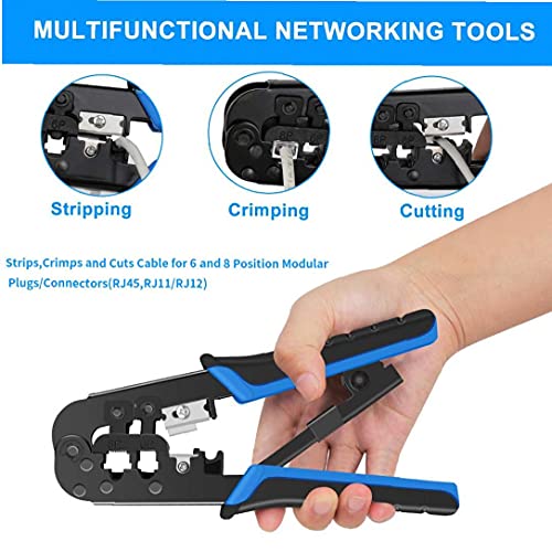 Ratelnetklem set. Professionele gereedschapskrimpt, strips en snijdt kabel voor 6 en 8 posities modulaire stekkers/connectoren (RJ45, RJ11/RJ12)