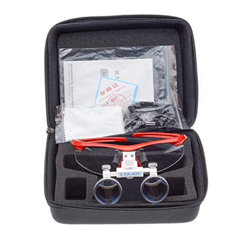Tandheelkundige loupes 3.5X420mm Optische Bril Verrekijker Loepen met Zwarte Doek Zak (Rood)