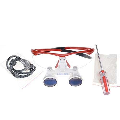 Specification: Tandheelkundige loupes 3.5X420mm Optische Bril Verrekijker Loepen met Zwarte Doek Zak (Rood)