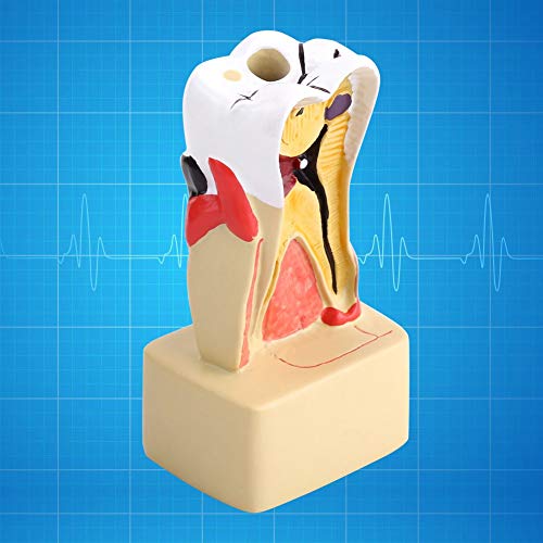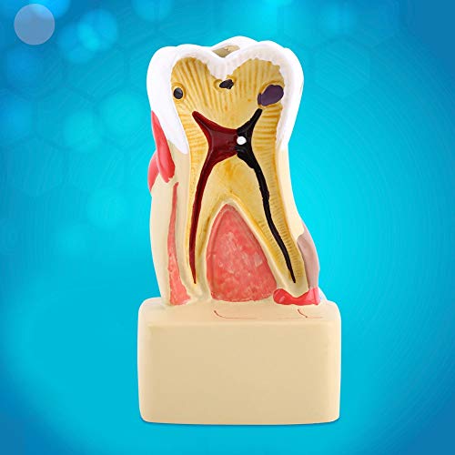 Functie: dit tandcariësmodel is gemaakt van hoogwaardig hars voor duurzaamheid, zodat het niet breekbaar is. De kleurrijke kleur is gemakkelijk te herkennen, de kleine onderdelen zijn gemakkelijk te dragen en kunnen met de vierkante basis stabiel op de tafel worden geplaatst. Het toont cariës, periapicale abs, bloedend tandvlees, tandsteen en een groot aantal pathologische condities van de tanden. Met dit model kun je leren hoe de binnenkant van een tanden eruit ziet, en feiten over tanden en tandhygiëne. Dit is een geweldig model voor tandartsen om met patiënten te communiceren en ook een visueel hulpmiddel voor schoolkinderen van alle leeftijden in de mondhygiëneonderwijs.